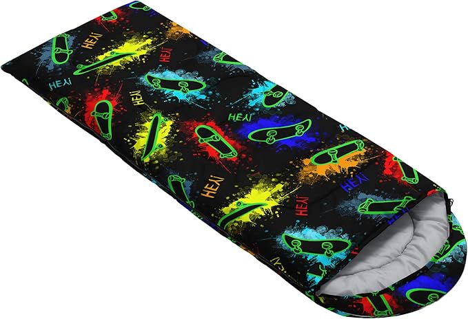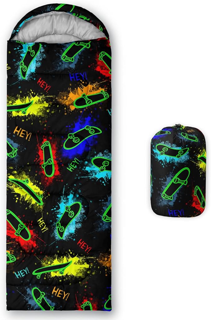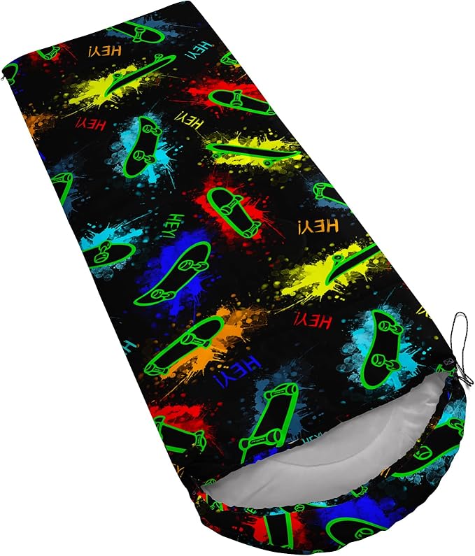 • A THOUGHT OUT DESIGN: Drawstring allows you to tighten hood and keep you warm. The idea of having a zipper at the foot to allow more warm or cool air to enter or exit the bag in different times of the season.Our Skateboard Graffiti sleeping bags are designed to provide much needed rest after a full day of outdoor activities.