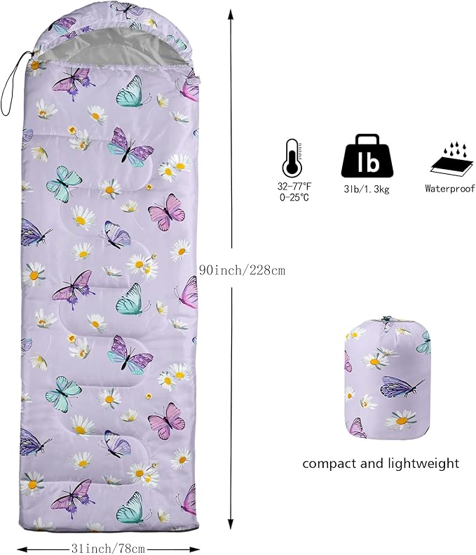 • FITS FOR 3 SEASONS: SIZE - 31 by 90 inches (W x D). Our sleeping bag can be used in 3 seasons with a design temperature of 32℉-77℉(0℃-25℃). These bags also have a weather resistant waterproof design to keep you warm and prevent you from any dampness.