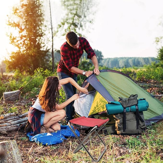 Folding Camping Stool, 16 Inch Tall Portable Folding Stool Aluminum Alloy Lightweight Stool Seat Red Foldable Stool with Carry Bag for Fishing Outdoor Camping Hiking and BBQ