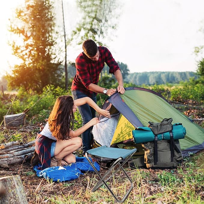 • High Quality Material: Aluminum alloy material makes the folding chair more lightweight and sturdy, the fabric on top of the foldable stool is jacquard fabric,which is wear-resistant, water repellent and durable, and can be used for a long time.