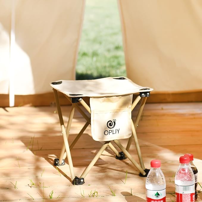 Opliy Camping Stool 2 Pack,13.5 Inch Portable Folding Stool for Outdoor Gardening and Beach Hiking Fishing,Foot Stool with Carry Bag (Khaki)