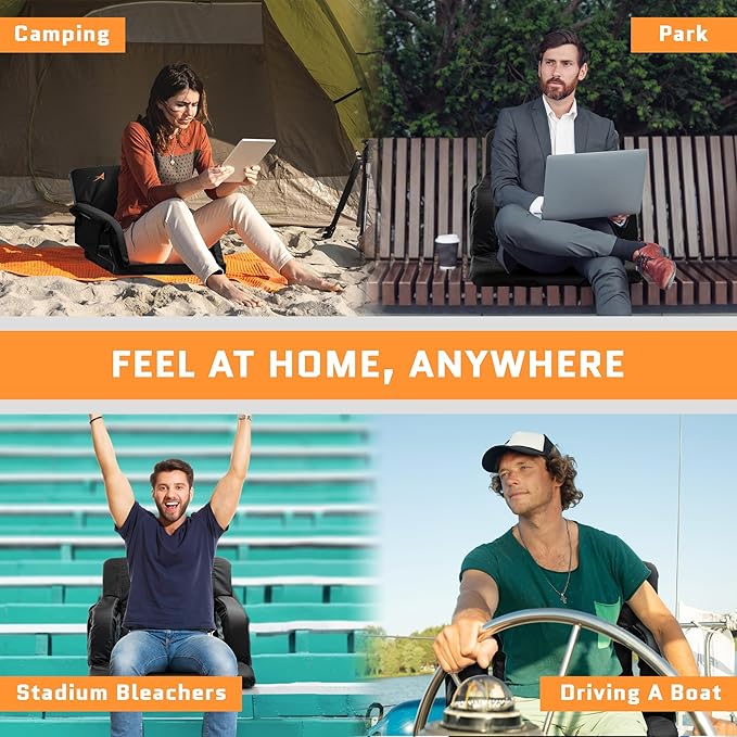 • FEEL AT HOME, ANYWHERE - Our heated seat is 20” wide, has a waterproof bottom and water-resistant construction to keep you nice and dry when the bleachers are wet. It comes with high-density memory foam cushions that feel like sitting on your couch. What’s more, our seat offers 6 adjustable reclining positions, back support and soft padded armrests.