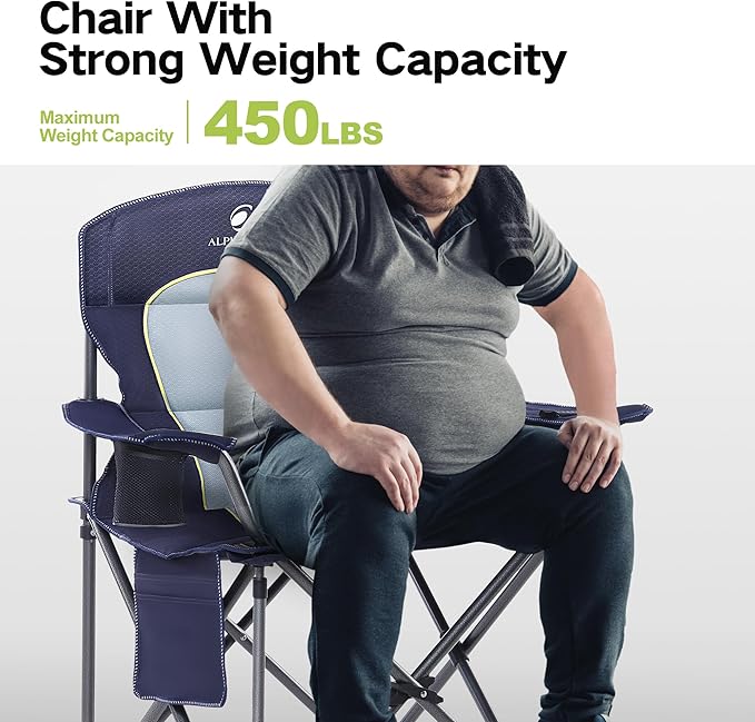 • 【Oversized Quad Chairs】The size for Oversized Camping Folding Chair is 25.20" L x 39.37" W x 39.37"H, 9.05" x 38.58" when Folded, and weighs only 13.2 lbs. Support up to 450 lbs, perfect for heavy people. Your best companion for hiking, camping, hunting, traveling, fishing, picnic and other outdoor activities.
