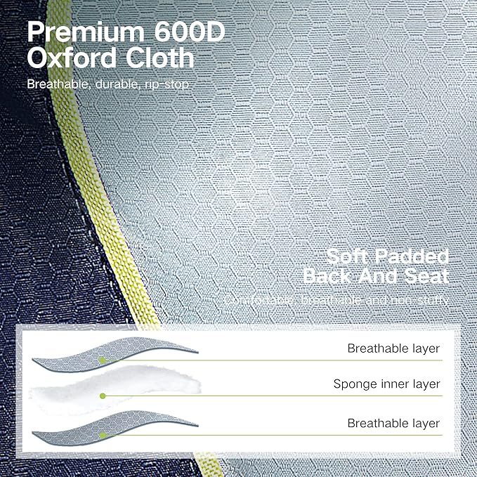 • Seat Material Type 600D padded oxford : Maximum Weight Recommendation 450 Pounds