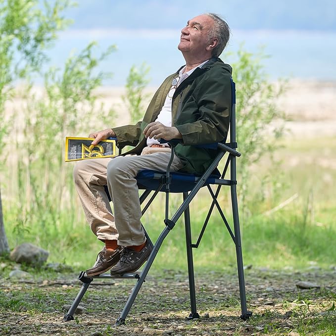 • FOLDABLE & PORTABLE: EVER ADVANCED tall camping chair can be folded and put into the attached bag. It fits into the trunk of most cars. It can be easily taken to camping, courtyards, lawns and playgrounds.