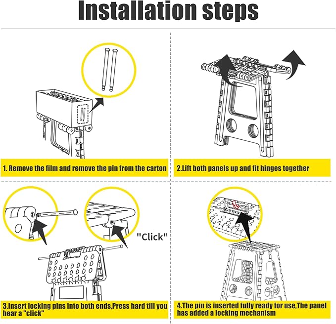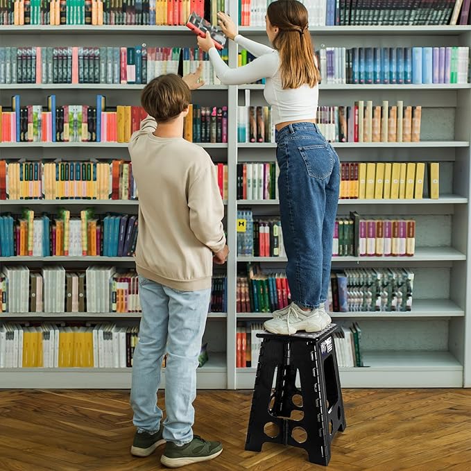 • Loads Up to 400lbs : The internal structural design 17.5 inch Folding Stool in Black is unique makes the step stool extra strong and safe. It can hold up to 400 lbs Max !!! Which is mainly used for adults indoor sitting. Please make sure the step stool is fully opened before use.Note: The size is measured manually, there may be a measurement error of 1-3cm