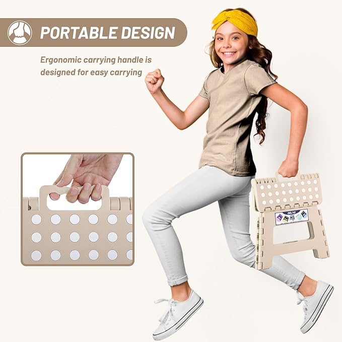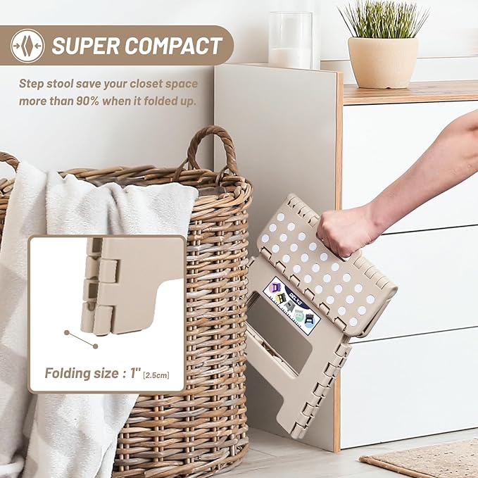 Delxo Folding Step Stool,9 Inch Lightweight Plastic Stepstool,Portable Collapsible Foldable Step Stool Non Slip Folding Stools for Kitchen Bathroom Bedroom in Khaki,1 Pack