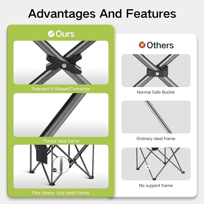 • 【CAMPING CHAIR With Premium Material】 The lawn chair with ergonomic padded back, seat and armrest provide max comfort for your body. The durable double-layer 600D padded oxford fabric with powder-coated steel tube frame enables you deserve a comfortable and safe chair
