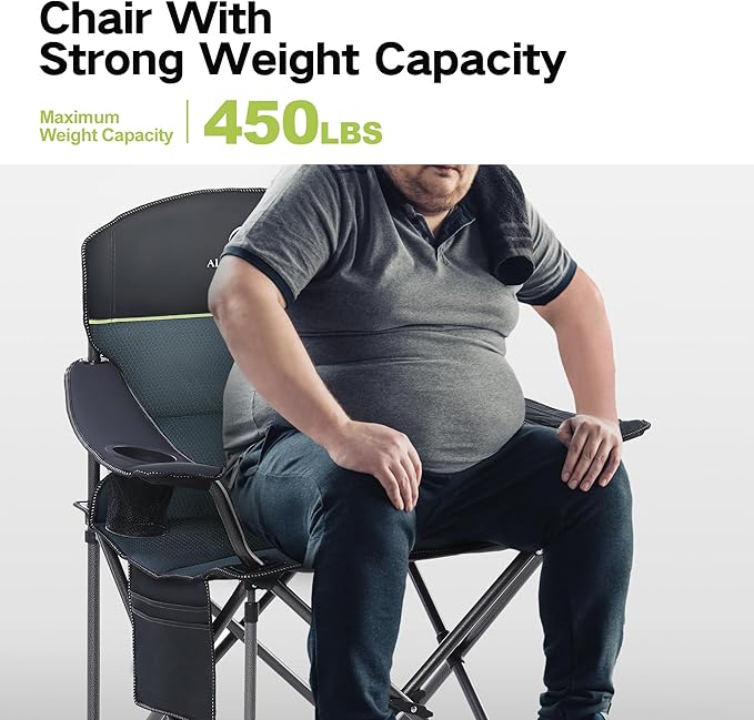 • 【Oversized Quad Chairs 】The size for Oversized Camping Folding Chair is 25.20" L x 39.37" W x 39.37"H, 9.05" x 38.58" when Folded, and weighs only 13.2 lbs. Support up to 450 lbs, perfect for heavy people. Your best companion for hiking, camping, hunting, traveling, fishing, picnic and other outdoor activities.