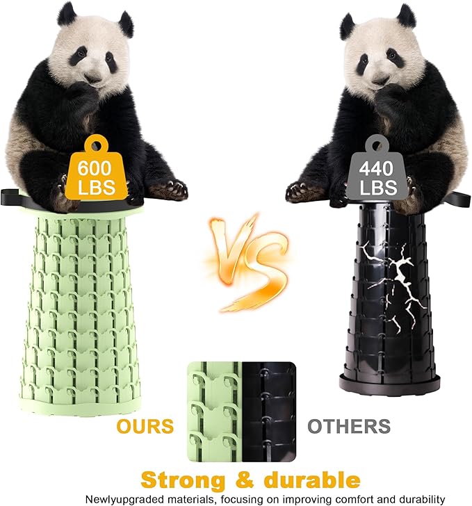 • 【ULTRA STABLE PERFORMANCE】 Upgraded telescoping structure and reinforced clasps give the foldable stool extraordinary stability and rigidity. Our Portable Travel Seat can support up to 600 lbs, far stronger than other similar products. Side support and the capacity of resistance to tilt are also reinforced, which makes the stool more sturdy and durable, ensure safety.