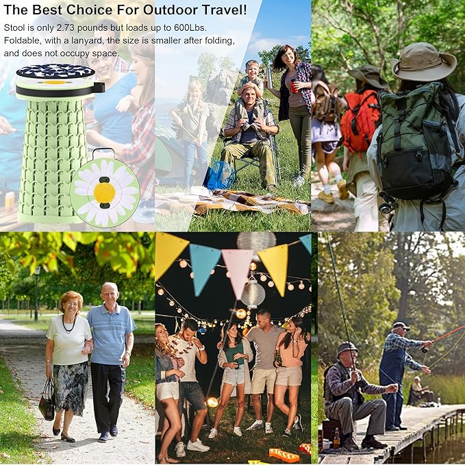 ALEVMOOM Upgraded Telescoping Collapsible Stool with Cushion, Folding Stool with Printing Portable Retractable Foldable Seat Max Load 600lbs for Adults Camping Fishing Outdoor
