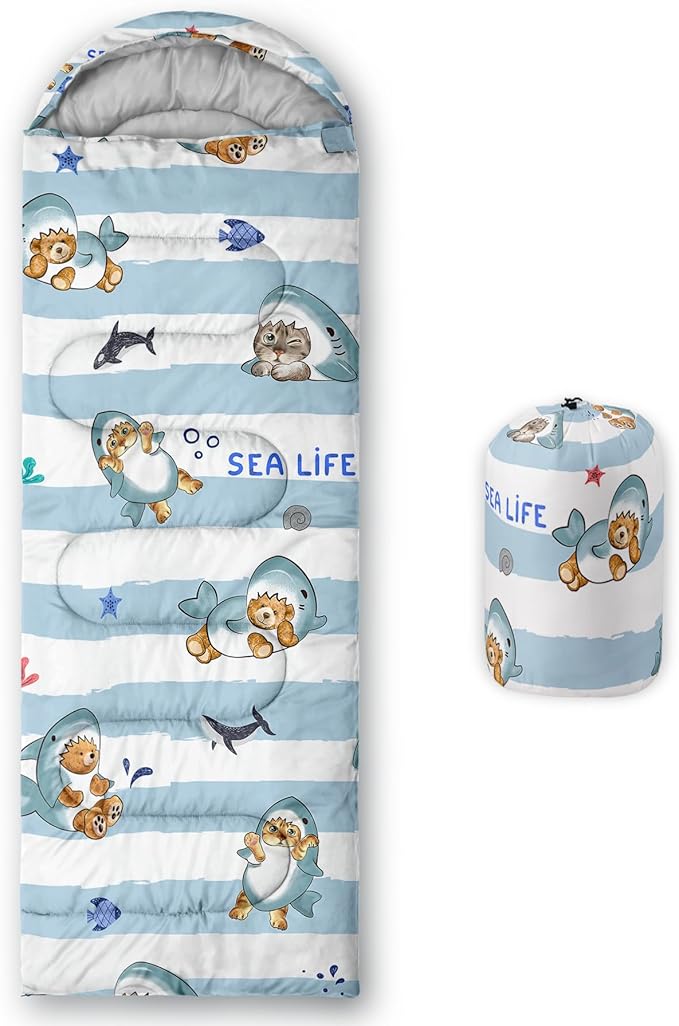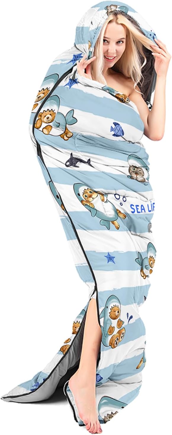 • 🌈【Fashion Design】SIZE - 31 by 90 inches (W x D). Our sleeping bag can be used in 3 seasons with a design temperature of 32℉-77℉(0℃-25℃). These bags also have a weather resistant waterproof design to keep you warm and prevent you from any dampness.
