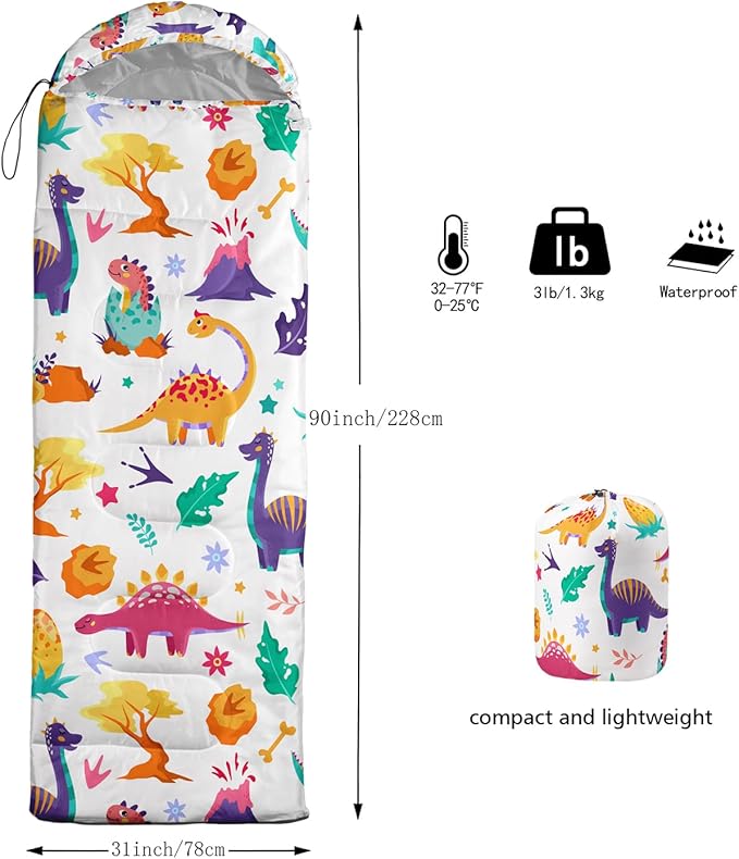 • Special Feature : Dinosaur design, foot zipper for temperature control, vacuum compressible