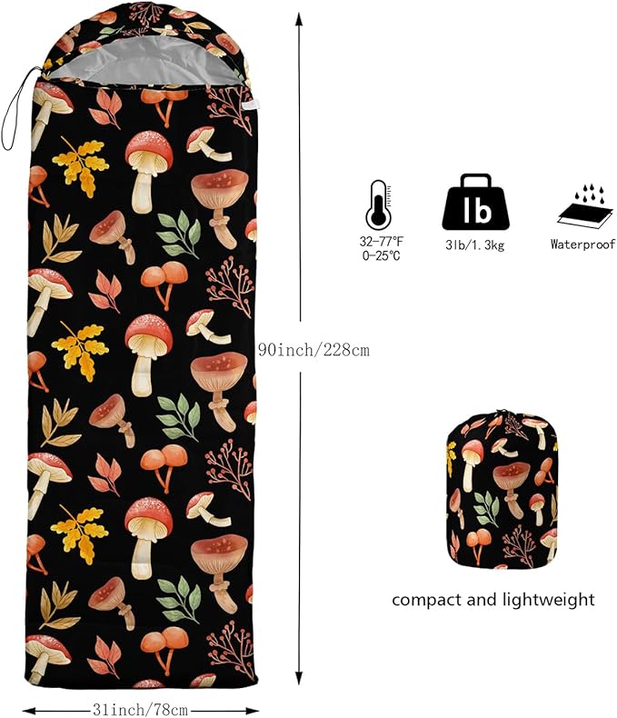 • 🌈【Fashion Design】SIZE - 31 by 90 inches (W x D). Our sleeping bag can be used in 3 seasons with a design temperature of 32℉-77℉(0℃-25℃). These bags also have a weather resistant waterproof design to keep you warm and prevent you from any dampness.
