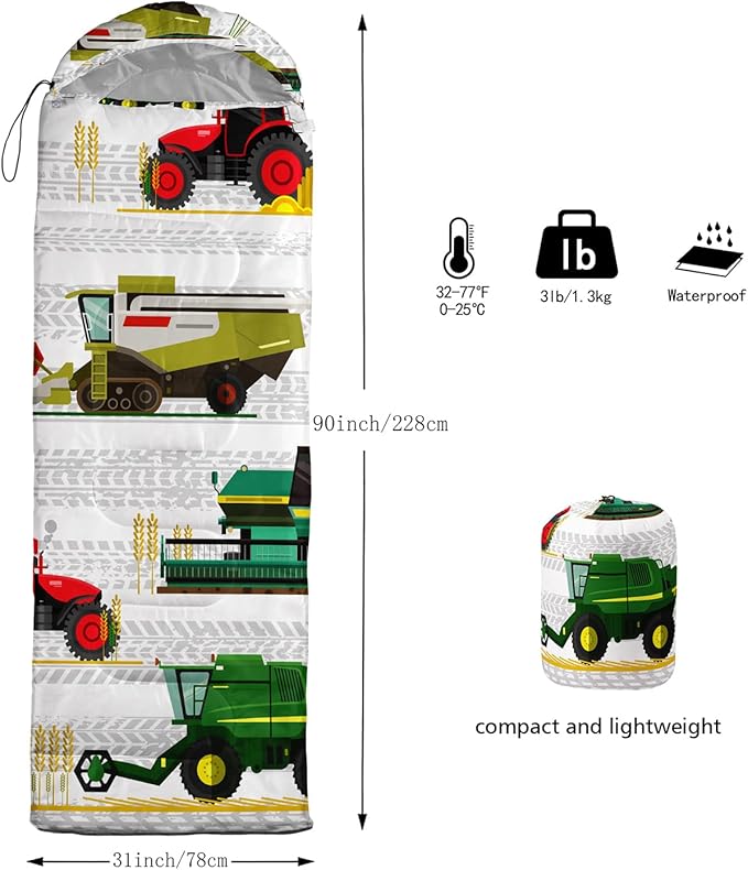 • 🌈【Fashion Design】SIZE - 31 by 90 inches (W x D). Our sleeping bag can be used in 3 seasons with a design temperature of 32℉-77℉(0℃-25℃). These bags also have a weather resistant waterproof design to keep you warm and prevent you from any dampness.