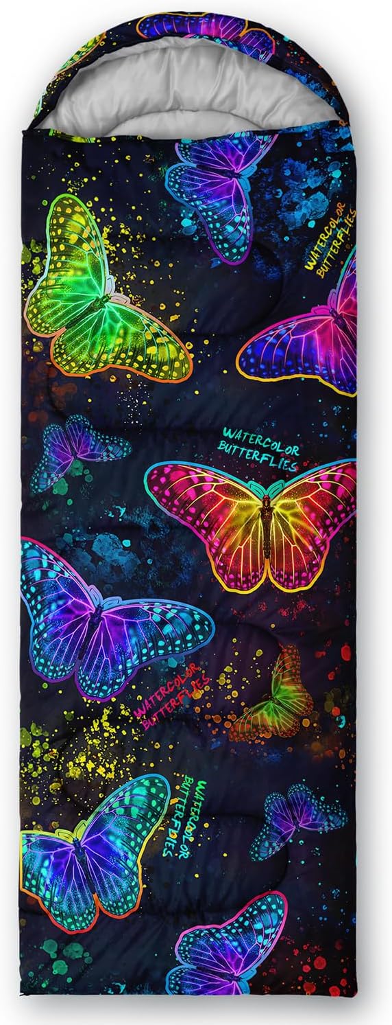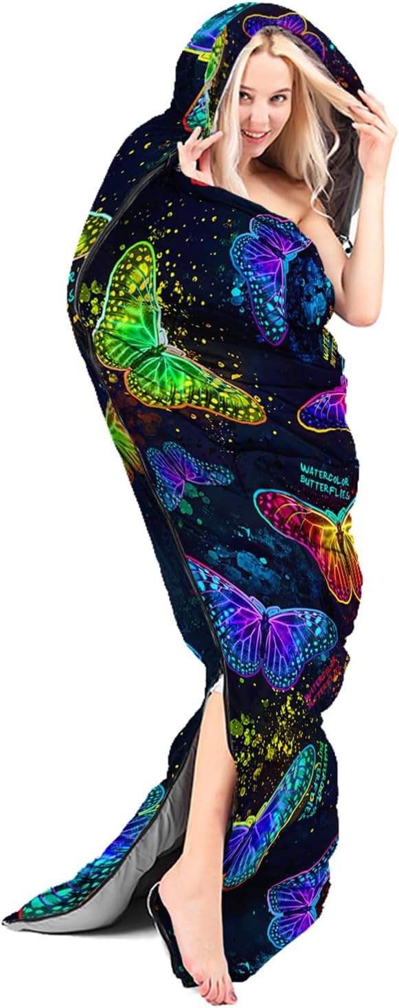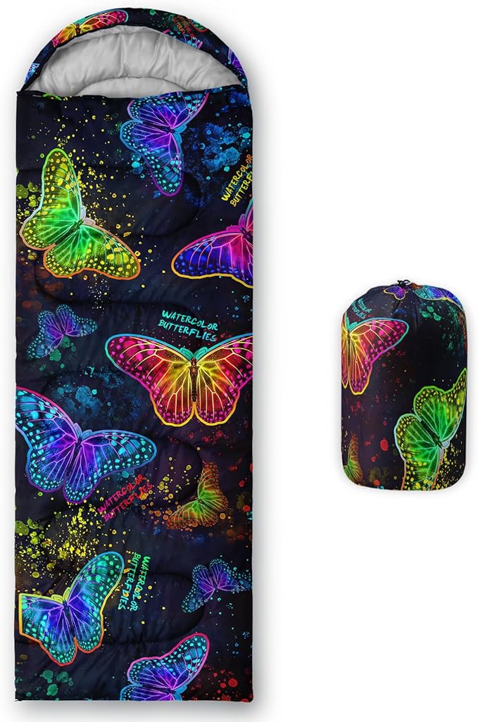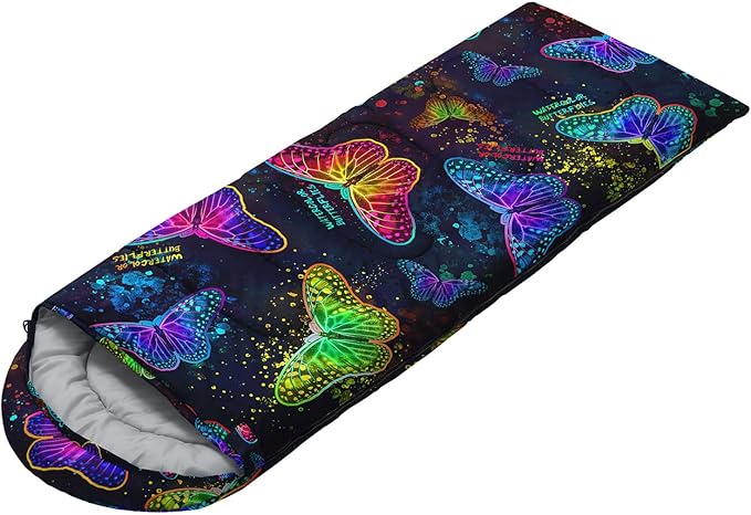 • 🌈【Fashion Design】SIZE - 31 by 90 inches (W x D). Our sleeping bag can be used in 3 seasons with a design temperature of 32℉-77℉(0℃-25℃). These bags also have a weather resistant waterproof design to keep you warm and prevent you from any dampness.