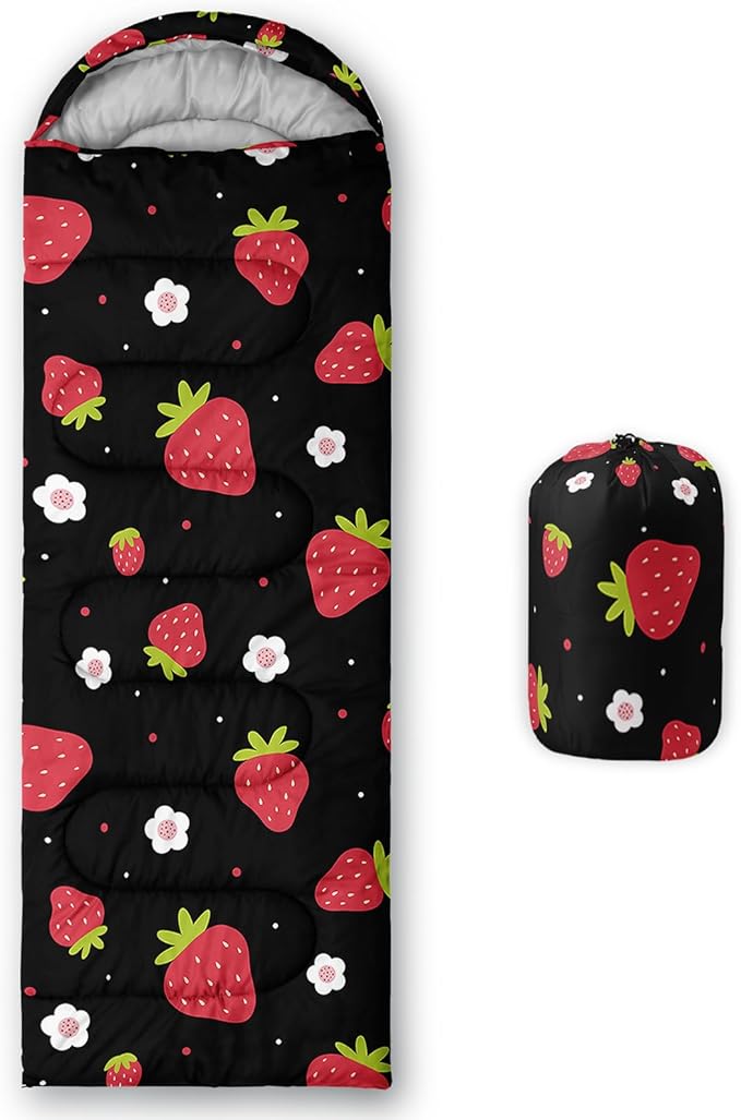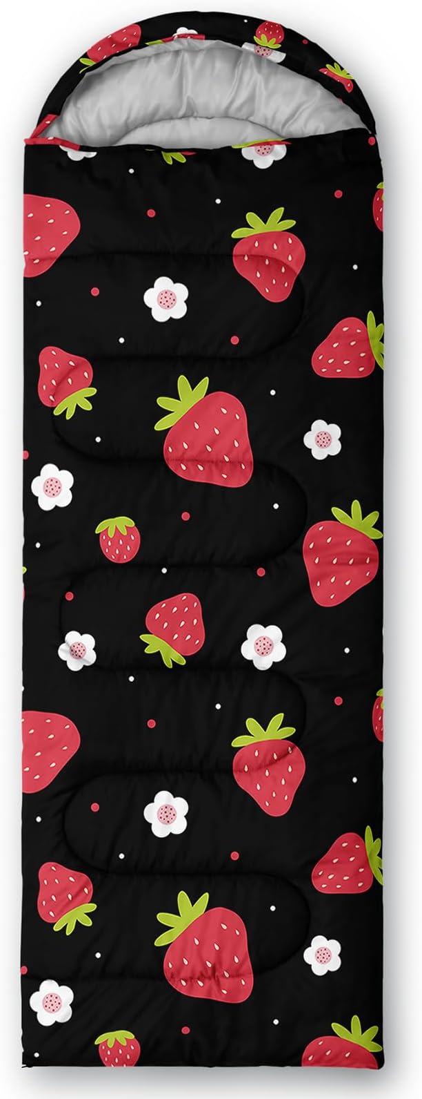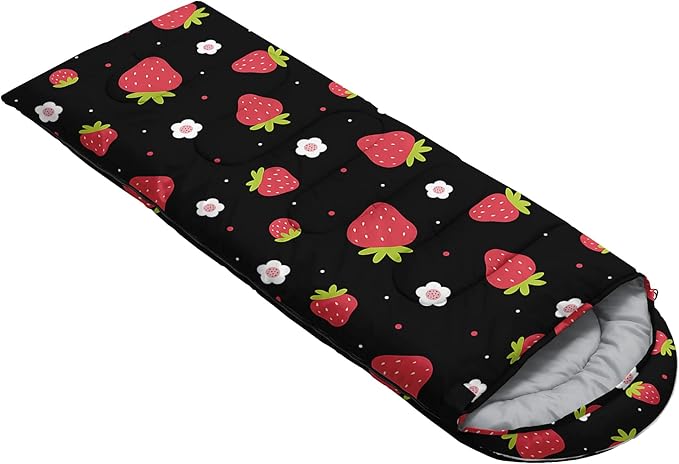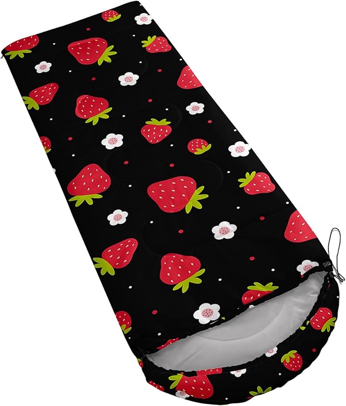 • A THOUGHT OUT DESIGN: Drawstring allows you to tighten hood and keep you warm. The idea of having a zipper at the foot to allow more warm or cool air to enter or exit the bag in different times of the season.Our Plants Strawberries Flowers sleeping bags are designed to provide much needed rest after a full day of outdoor activities.