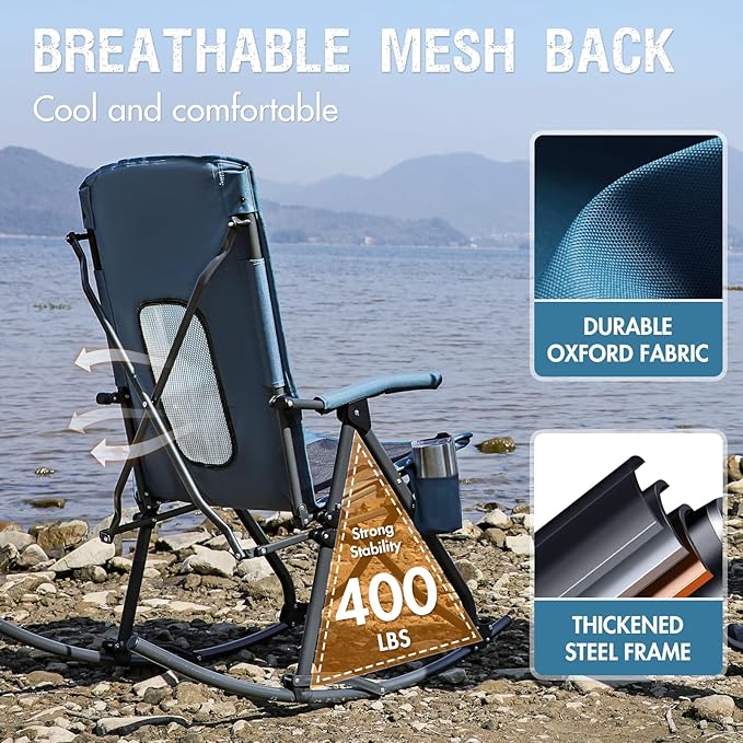 PORTAL Oversized Folding Rocking Camping Chair Portable Outdoor Rocker with High Back Hard Armrests Carry Bag, Supports 400 lbs
