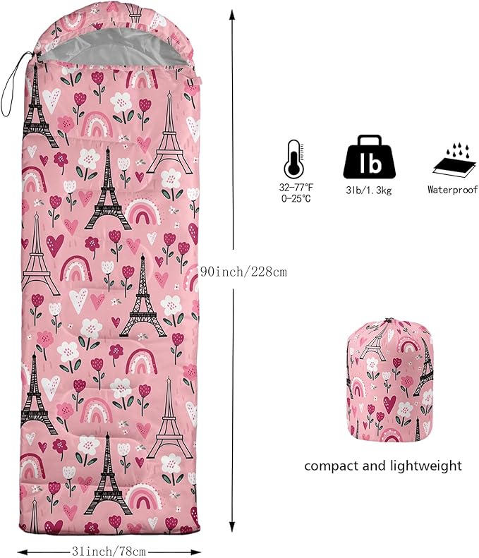 • 【Fits For 3 Seasons】: Size - 31 by 90 inches (W x L). Our sleeping bag can be used in 3 seasons with a design temperature of 32℉-77℉(0℃-25℃). These bags also have a weather resistant waterproof design to keep you warm and prevent you from any dampness.