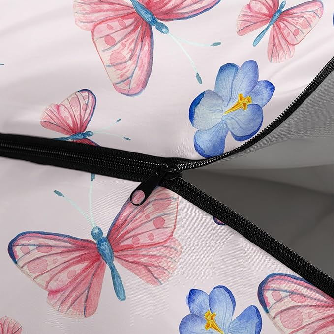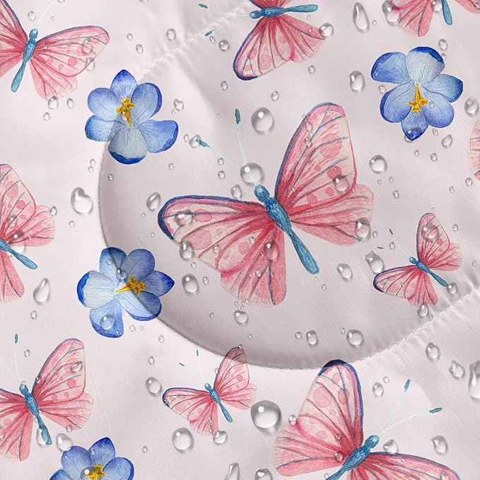 • Special Feature : Pink Butterfly Blue Flower Print, Foot Zipper, Waterproof