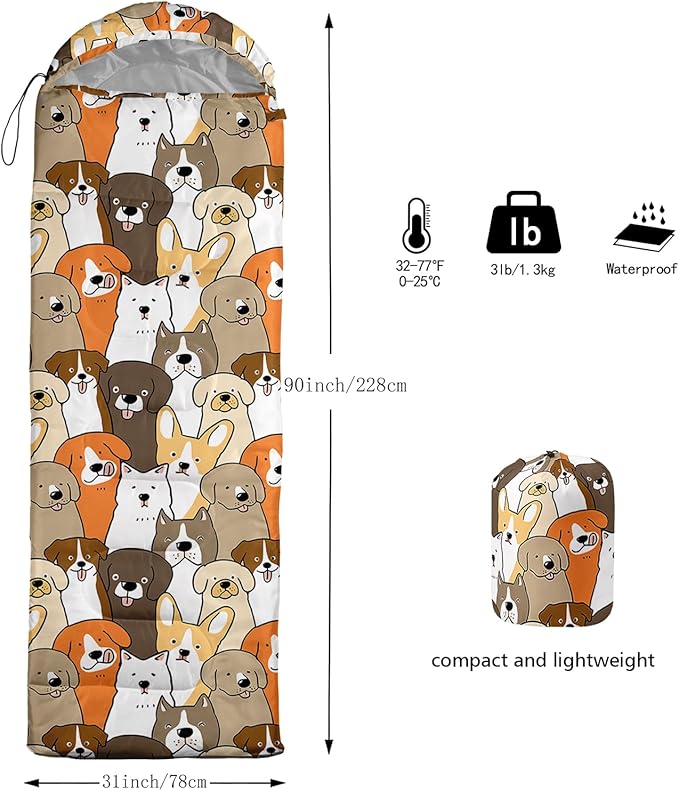• 【Fits For 3 Seasons】: Size - 31 by 90 inches (W x D). Our sleeping bag can be used in 3 seasons with a design temperature of 32℉-77℉(0℃-29℃). These bags also have a weather resistant waterproof design to keep you warm and prevent you from any dampness.