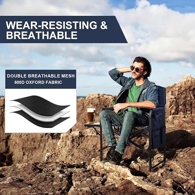 • 【MESH FABRC BREATHABLE】Certain parts of folding directors chairs outdoor are designed with breathable mesh fabric, allowing for improved airflow and a cool seating experience.