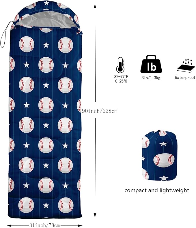 • 【Lightweight and Compact Package】: Pack Weight is 3lbs, the package size is cylinder 11.8 by 13.12 inches and would take up less space. Convenient to carry along for any outdoor adventures, class camping trip, the aquarium, summer camp, couch surfing, jam bags, office crashing, and as an emergency blanket for vehicles.