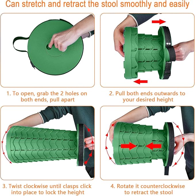 • PORTABLE & LIGHTWEIGHT: This telescopic stool is only 2.54 pounds with dimeter 9.84 inches/250mm. The adjustable strap makes the stool easy to carry in your hand or hanging on your shoulder. Perfect to use for camping, fishing, hiking, hunting, picnic, BBQ. Also can be used in living room, bedroom, bathroom etc