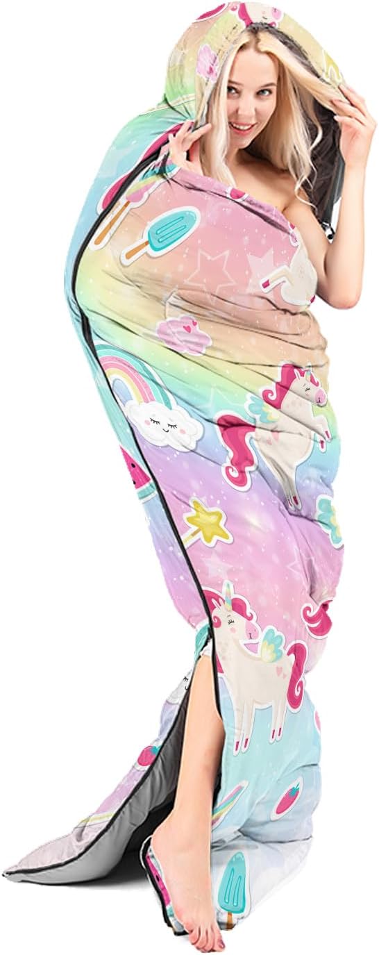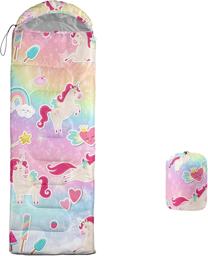 • Girls Unicorn Great For All Seasons- Our camping sleeping bags are designed to give you a good night's sleep. Ideal for spring, summer, fall, and winter, rated from 32°F to 77°F (optimal comfort temperature is 50°F to 65°F). Stay comfortable and warm in any condition at normal altitude. Can be used for any outdoor adventure, class camping, summer camps, couch surfing, indoor blanket, and as an emergency blanket for vehicles.