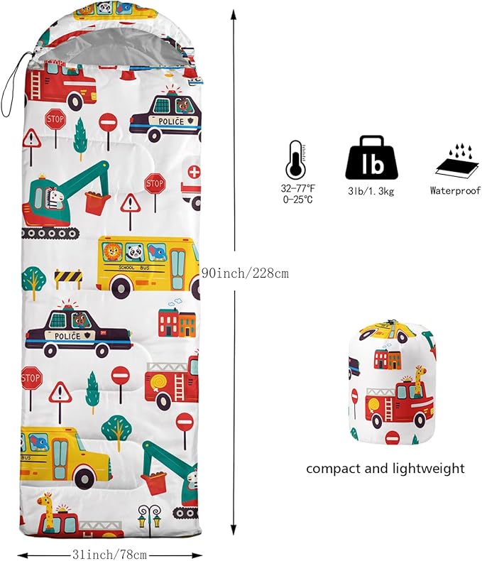 • Print sleeping bags For All Seasons- Our camping sleeping bags are designed to give you a good night's sleep. Ideal for spring, summer, fall, and winter, rated from 32°F to 77°F (optimal comfort temperature is 50°F to 65°F). Stay comfortable and warm in any condition at normal altitude. Can be used for any outdoor adventure, class camping, summer camps, couch surfing, indoor blanket, and as an emergency blanket for vehicles.
