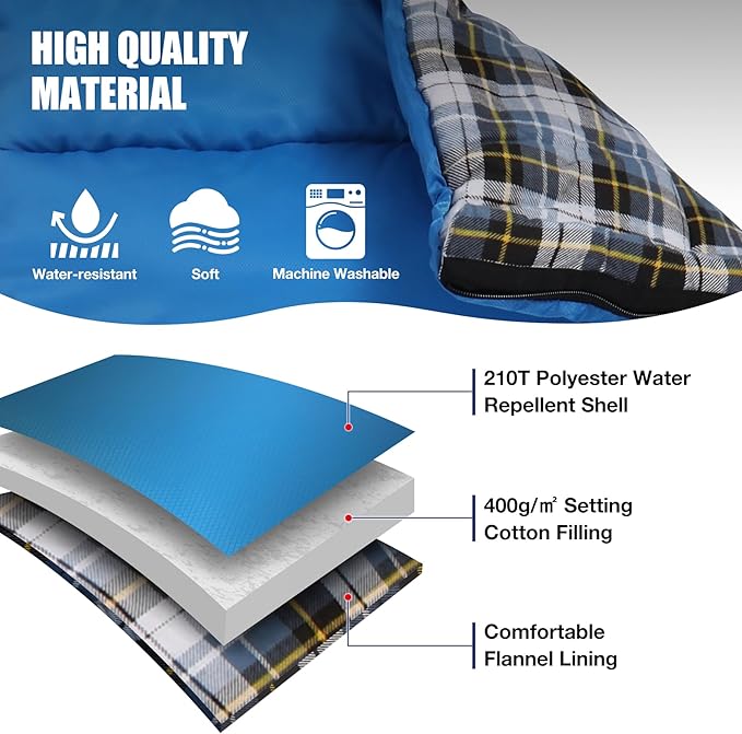 • Comfortable Material: Perfect flannel liner sleeping bags for children aged 5 to 9, high-quality and durable 210T polyester ripstop, with hollow cotton fiber filling, which is soft and comfortable to use. Anti-clip strip prevent zipper snags, while velcro design provides convenience.