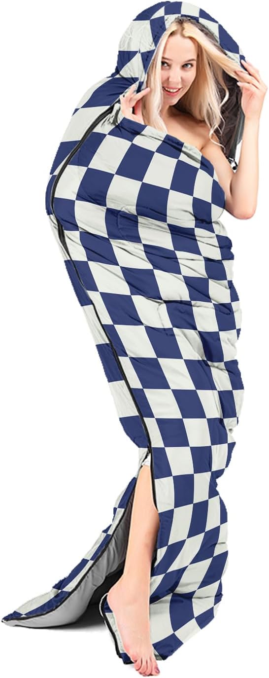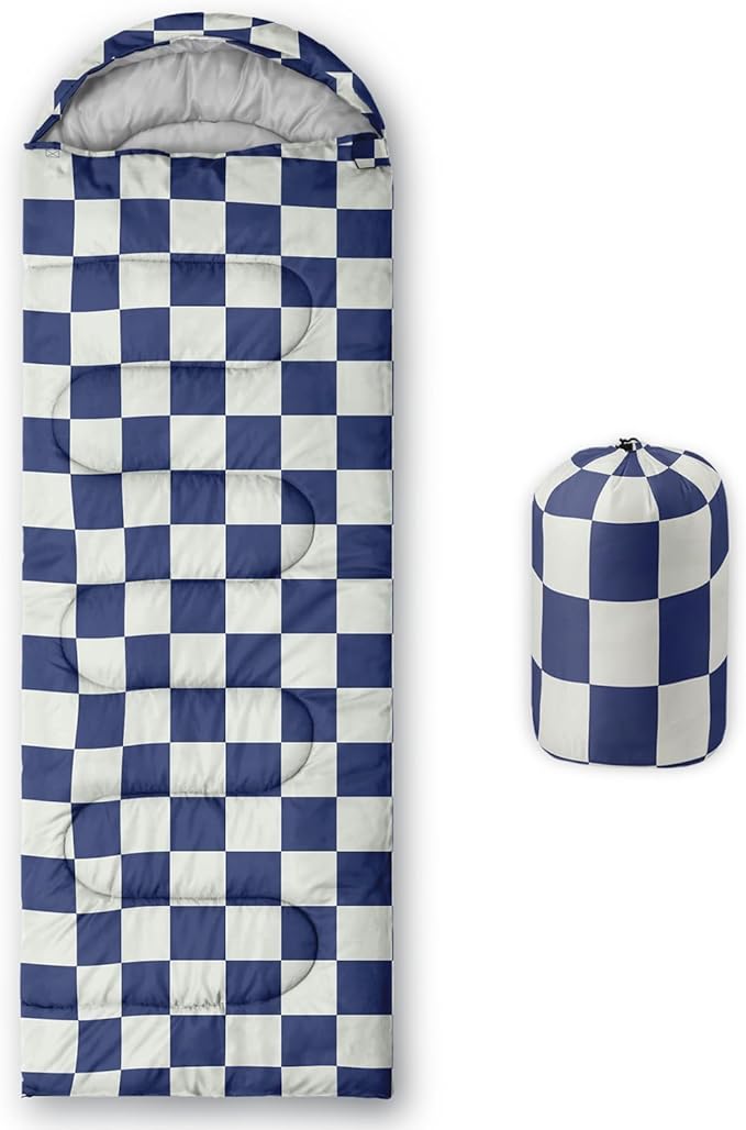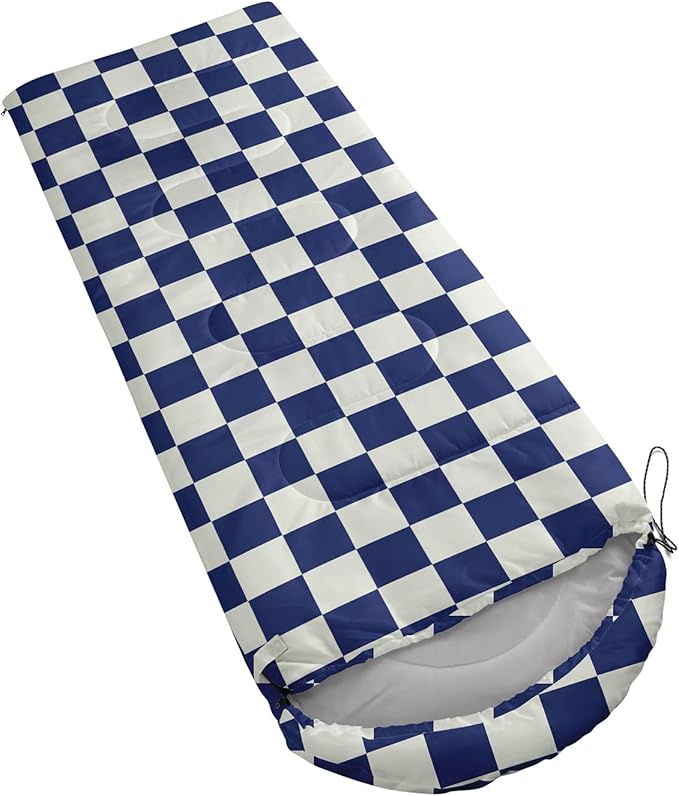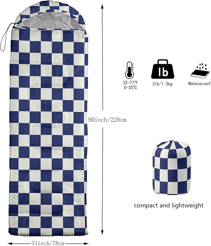• Purple and White Check sleeping bags For All Seasons- Our camping sleeping bags are designed to give you a good night's sleep. Ideal for spring,summer,fall,and winter,rated from 32°F to 77°F (optimal comfort temperature is 50°F to 65°F). Stay comfortable and warm in any condition at normal altitude. Can be used for any outdoor adventure,class camping,summer camps,couch surfing,indoor blanket,and as an emergency blanket for vehicles.