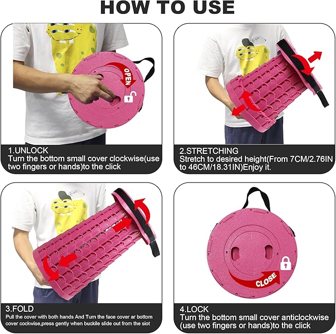 • 【Adjustable Height Range2.76"-18.1"】The 2025 Upgraded Collapsible stool is adjustable and it can be set to your desired height within the range of 2.76 to 18.1 inches. This adjustability makes it suitable for most adults use anywhere! yet more sturdy loading capacity 600LBs.