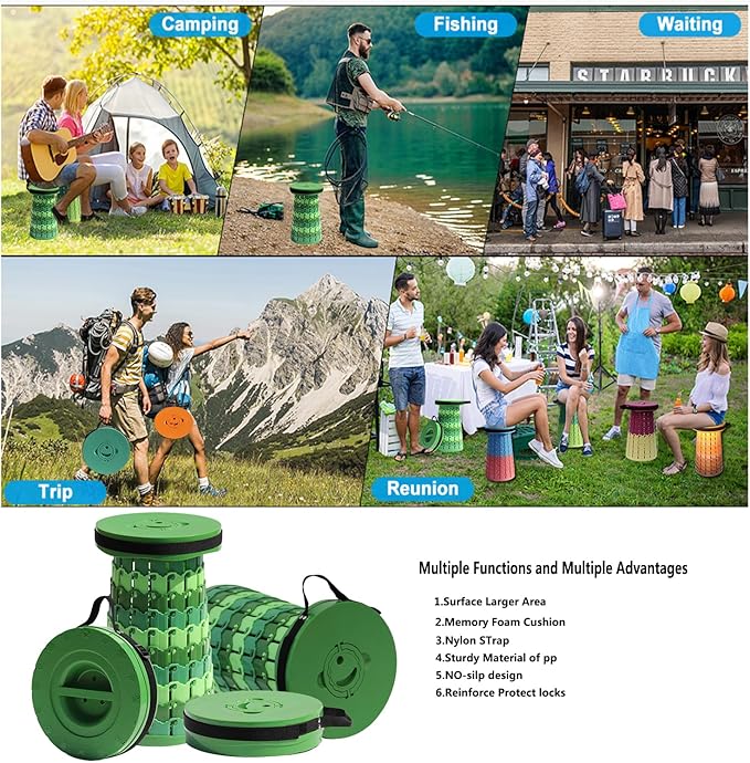 • Widely Application: Camping stool can be used indoors and outdoors, in indoor places such as living rooms, bedrooms, bathrooms, kitchens, and offices. Outdoor activities: garden, hiking, BBQ, camping, queuing, fishing, etc. Perfect gift for friends.