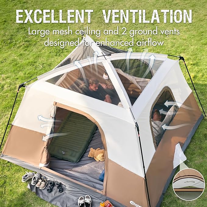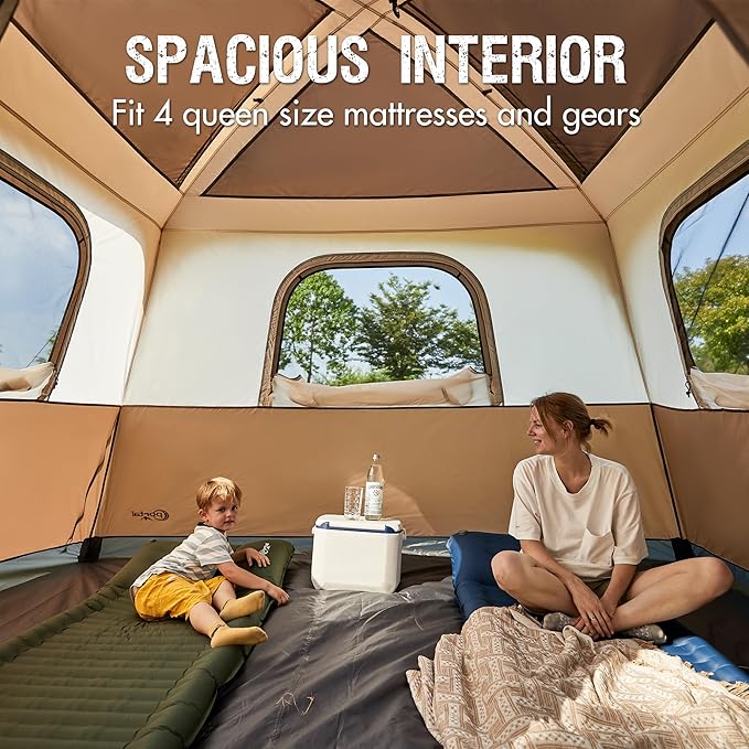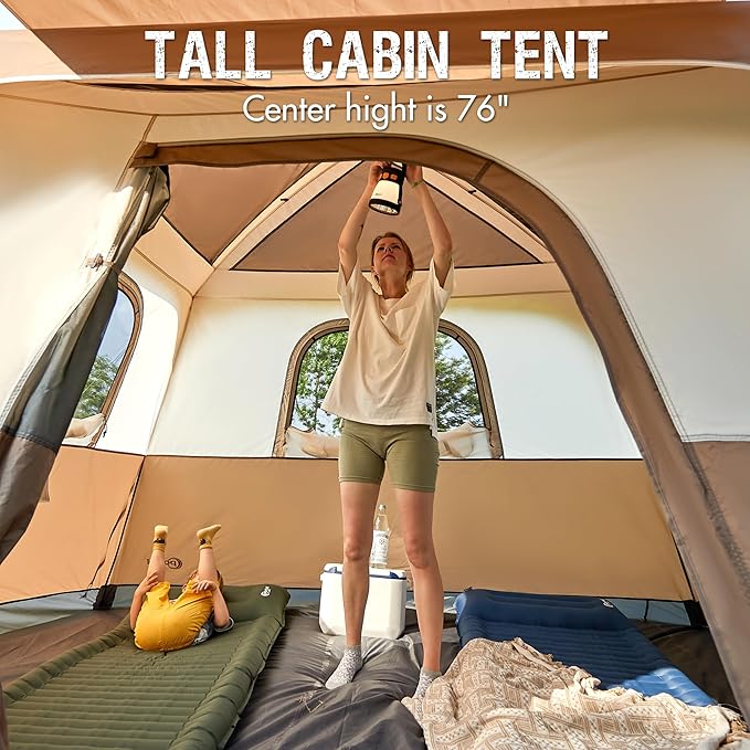 • Roomy Interior & 76" Tall: Measuring 10' x 9' x 76", this 6 person tent fits 2 queen size air mattresses or 6 sleeping bags. The 76" center height ensures enough space for standing and comfortable movement inside the tent.