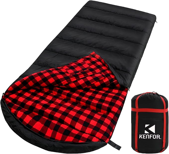 0 Degree Sleeping Bag 100% Cotton Big and Tall Flannel XXL Cold Weather Winter Sleeping Bag for Adults Camping Zero Degree