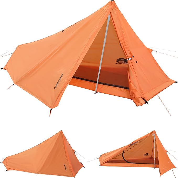 • ● 1 PERSON TREKKING POLE TENT: Why Underwood Aggregator trekking pole tent? This poleless camping tent could be set up with trekking poles or any stick longer than 46 inches. However, this lightweight single person tent also works fine by hanging the top guy line to the tree without the poles or sticks. This solo tent is easily pitched by 1 person without any experience in 2 minutes(NO TREKKING POLES PROVIDED!!!)