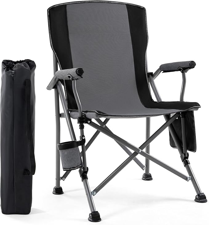 • COMFORTABLE---Our comfortable camping chairs with 20-inch high backrest seats is ergonomically designed, providing you with a more comfortable and spacious seating experience, allowing you to enjoy ultimate comfort for extended periods. The supportive armrests make it easier for you to get in and out of the chair. High-quality 600D Oxford fabric offers superior breathability and comfort, making it more comfortable and durable than standard outdoor chairs.