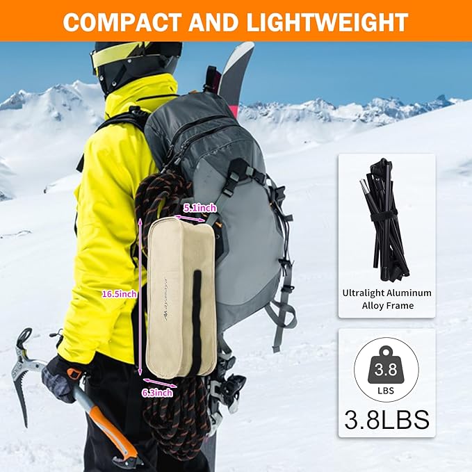 • Compact and Lightweight: The lightweight folding camp chair is crafted with a 7075 aluminum alloy frame and 600D Oxford fabric. It weighs 4.6 lbs and can be easily folded into a compact 6x6x16-inch carrying bag, ensuring effortless portability.