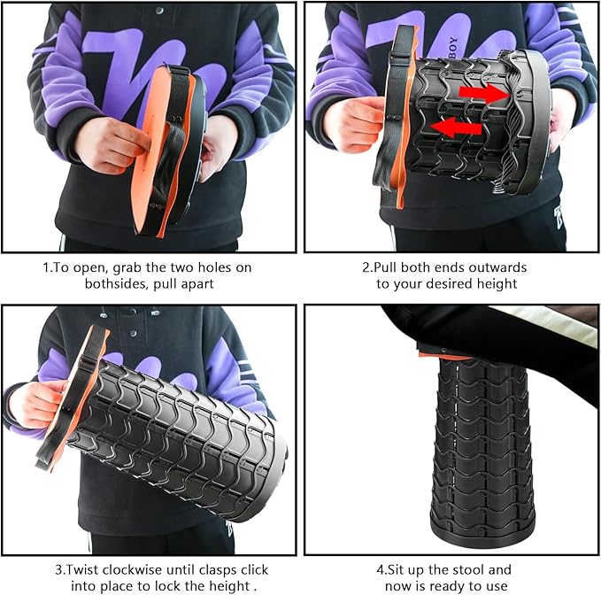 • Compact and Lightweight - This retractable stool can easily fit into your backpack or be carried by hand or on your shoulder, thanks to the adjustable nylon strap