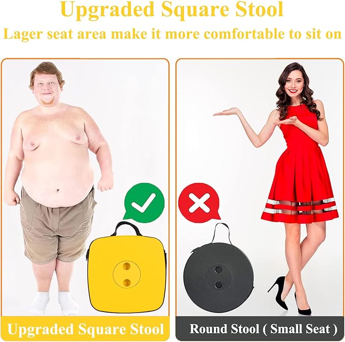 • [Self-Open Prevention]: When this collapsible stool is closed, snap joints designed on the caps come into play to prevent the stool from opening by itself. This make it more convenient and easier to bring it along for outdoor activities, the non-slip base ensure that this collapsible stool gets the stability to provide safety and comfortable sitting.