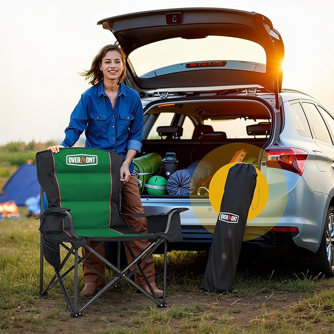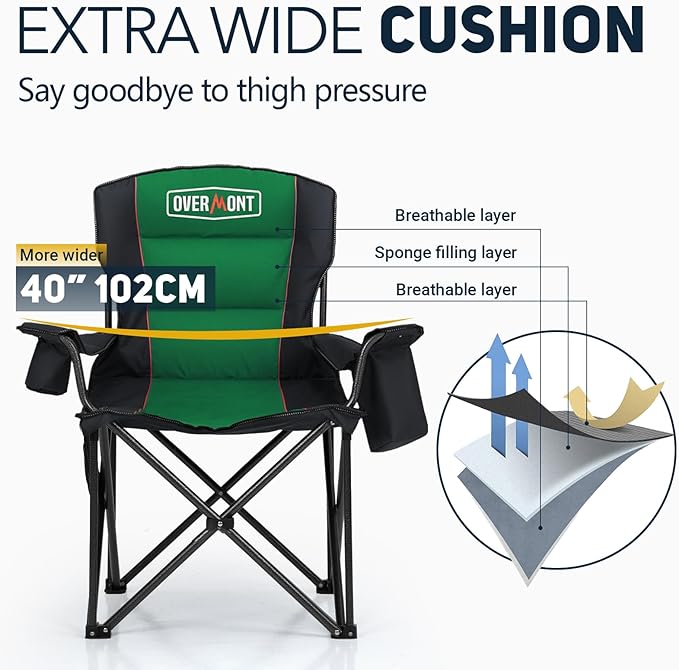 • 【Durable Oxford Fabric】Overmont oversized folding chair measures 39x20x24in and is made of double-layer tear-resistant 600D Oxford fabric with sponge cushion, providing excellent durability and breathability.