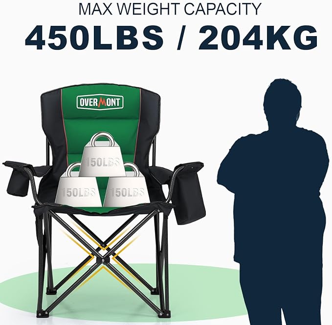 Overmont Oversized Folding Camping Chair - 450lbs Support with Padded Cushion Cooler Pockets - Heavy Duty Collapsible Chairs for Sports Garden Beach Fishing