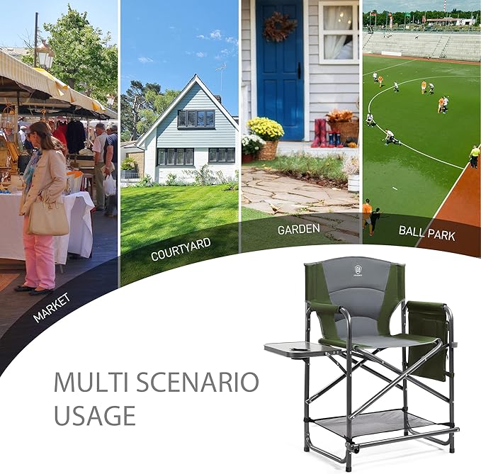 EVER ADVANCED Medium Tall Directors Chair Foldable Makeup Artist Chair Bar Height with Side Table Cup Holder and Pocket Footrest, Supports 400LBS (Green, Seat Height: 23.2 inches)