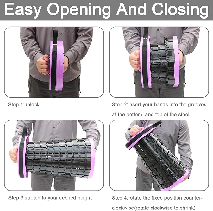 • 【US patent Deisgn】XXL Collapsible Stool with cushion Height 50cm/19.7" D 30cm/11.8" Weight:1.5kg/3.5lbs Crafted with upgraded thickened plastic,our collapsible stools for adults boast unrivaled strength,Safety,and Stability,More sturdy,supporting up to 1000 pounds.With its patented design and multiple locking mechanisms,sit securely and comfortably in any situation.