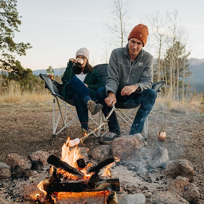 CORE Loveseat Outdoor Camp Chair | 2 Person Folding Double Lawn Chair with Storage Pockets for Accessories | Perfect for Concert Seat, Festivals, Sports, Beach, Travel & Picnic