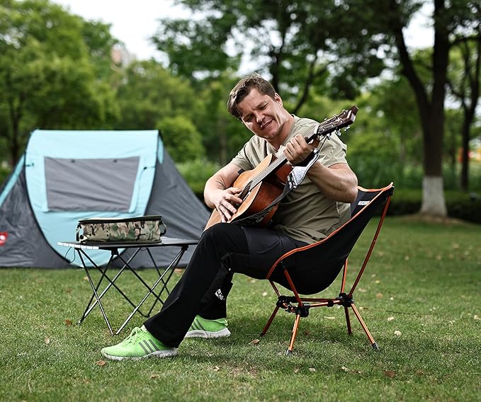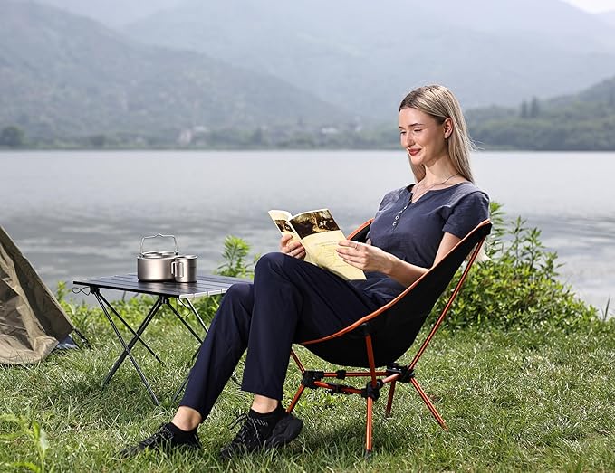 • Ultralight & Compact: Frame is made of aircraft-grade aluminum alloy, ultralight yet highly capable, weighing just 2.7 pounds. It folds up into its own carry case that only takes up about 1/3 the space of regular camp chairs and can fit in a backpack or attach to a day pack, making it easy to carry with you at all times. Ideal for outdoor activities where space and weight are limited.