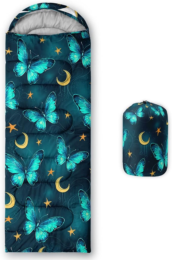 • 【Fits For 3 Seasons】: Size - 31 by 90 inches (W x D). Our Butterfly sleeping bag can be used in 3 seasons with a design temperature of 32℉-77℉(0℃-25℃). These Sleeping bags also have a weather resistant waterproof design to keep you warm and prevent you from any dampness.