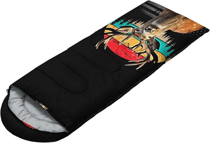 • 【Fashion Design】The outdoor camping-themed sleeping bag is printed with a deer parttern,which suitable for adults who like hunting.This sleeping bag is lightweight and waterproof,which is a good choice for camping hiking.