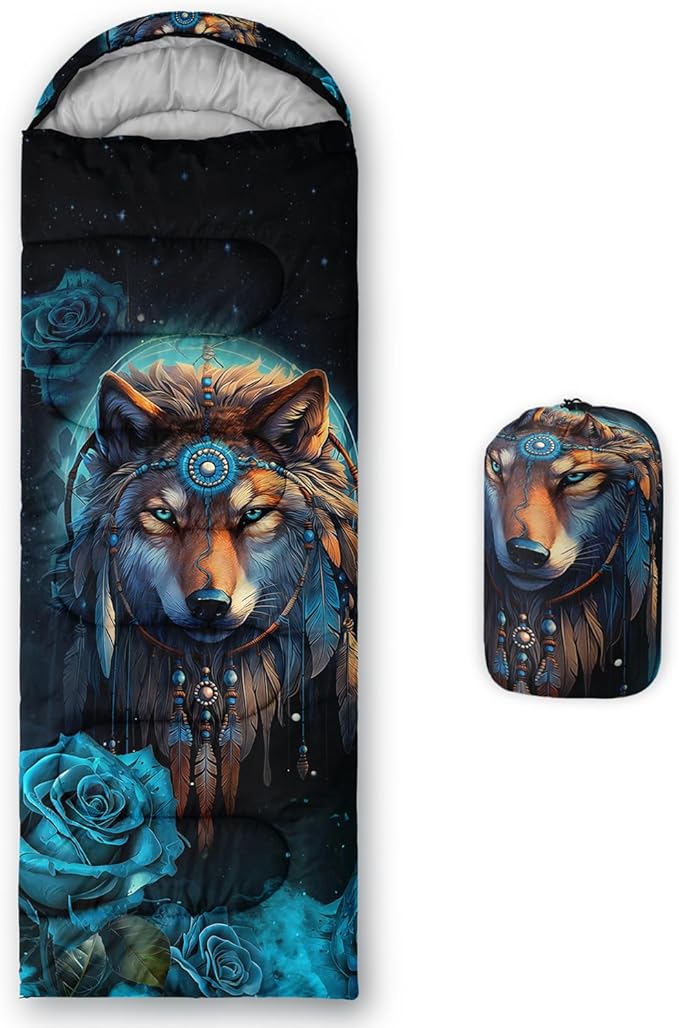 • 【Fashion Design】The camping sleeping bag is designed with wolf pattern.This sleeping bag is lightweight and easy to carry,suitable for outdoor camping and hiking.Our sleeping bags are designed to provide much-needed rest after a long day outdoors.